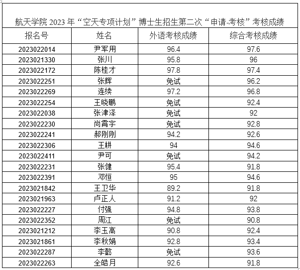 空天专项计划——非全日制专业型:张健、邓恒、王卫华、卢正人、付强、周江、李玉高、李秋娟、李懿、全皓月