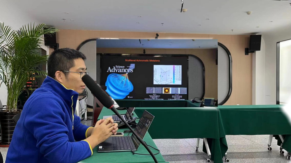 讲座过程中,王浩博士围绕基于纳米尺度双光子聚合3D/4D 打印的增材制造技术,以光学和光子学应用为重点,提出了双光子 3D 打印近完美光学器件的模型并实验证实,为 3D 打印超精密光学器件的制备和应用提供了基础,实现了低折射率材料的超高像素密度结构色 3D 打印,拓展了对结构色的认识,为显示、防伪加密、传感等领域提供了新的可能;开发了一种新型 4D 打印形状记忆材料,并首次实现了亚微米尺度的可编程 4D 打印形状记忆效应,突破了当前最小结构尺寸 10um 的瓶颈,对超高精度柔性光子学、电子学和微纳可控机器人等的实现具有重要意义;优化设计并实现了 3D 打印的高效率大数值孔径消色差透镜,实现了 3D 打印和电子束混合制备,为多尺度复杂微纳器件设计提供了新的可能。讲座结束,参会老师及同学积极与王浩博士进行交流,探讨光学领域与航天领域结合的新的可能性。