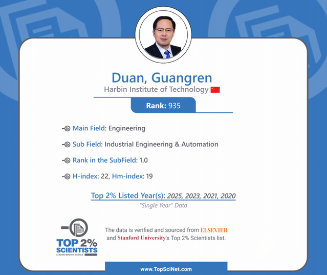 我院多位学者入选该榜单,其中段广仁、高会军、张立宪等39位学者入选“职业生涯影响力”榜单;段广仁、周彬、张立宪等57位学者入选“年度影响力”榜单,其中段广仁院士位居“Industry Engineering & Automation”子领域排行榜全球第一名。
